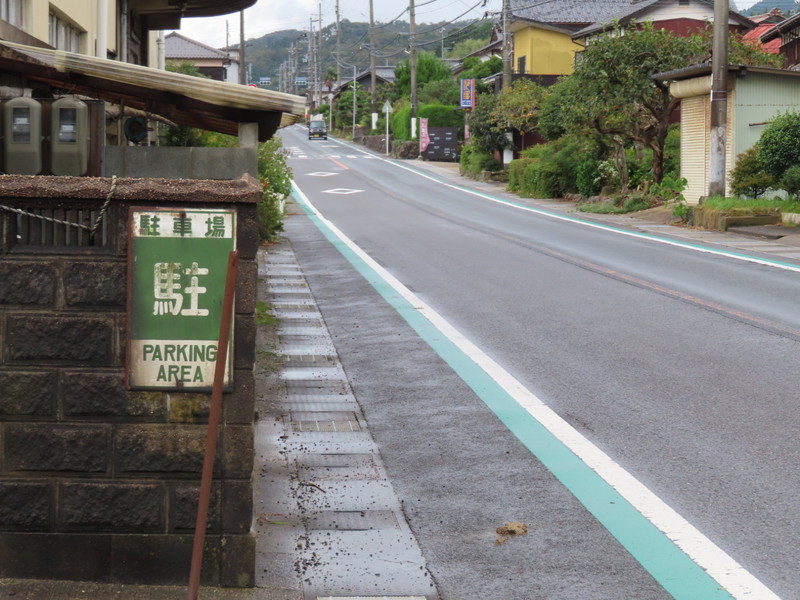 奥にある事業所の建物の塀に設置されており、その駐車場はこの手前に位置しています。私有地に向けて設置されているため、公安委員会設置ではないと思われます。
