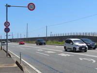 この次の交差点は┫形となっており、右折先に道路がないのにも関わらず、なぜか「原付の右折方法(小回り)」標識が設置されています。明らかに不要な規制です。