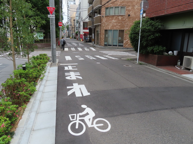 また、停止線の道路標示も自転車に合わせて通常よりも短く表示されています。