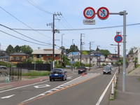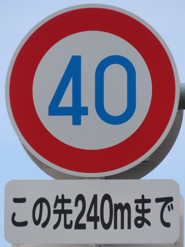 なお、40キロ規制となっているのは約230mの区間のみで、この手前の区間は市街地で道幅が狭いため30キロ規制、奥の区間は50キロ規制となっています。