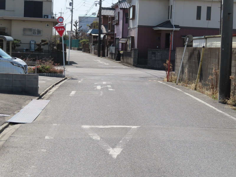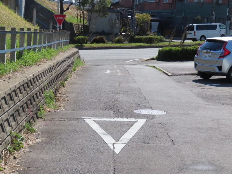 愛知県では、前方優先道路の道路標示をよく見かけますが、▽マークは1つだけしか表示しないようです。