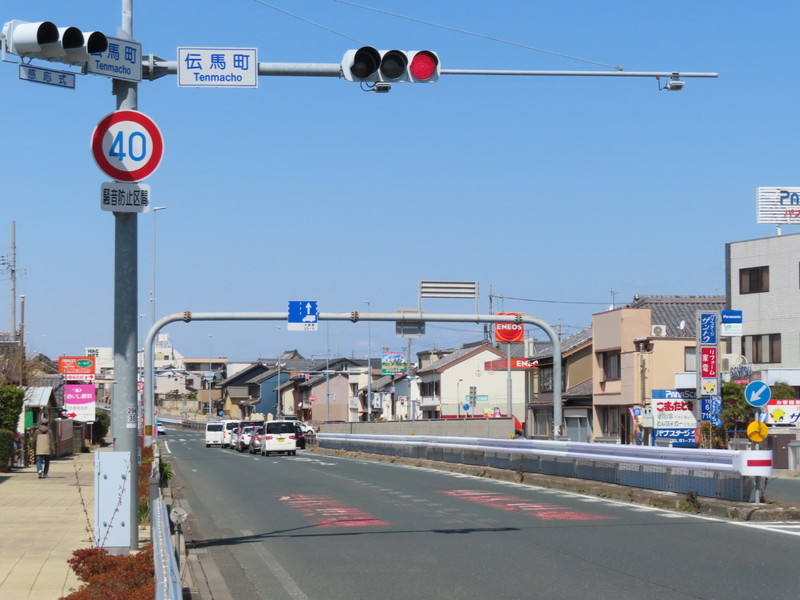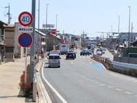 片側2車線のR1です。市街地を通り民家もこの周辺に多いため、騒音対策として40km/h規制となっています。