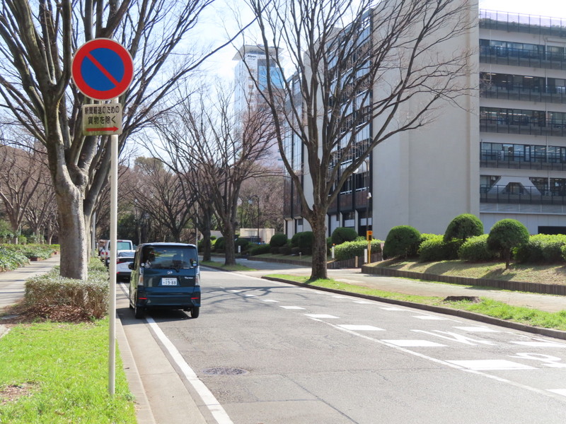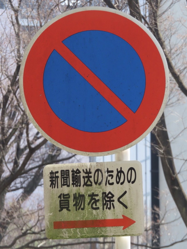 中日新聞本社周辺の道路です。こちらでは、「駐車禁止」規制がされていますが、道路の片側のみ新聞輸送のための貨物自動車を規制から除外しています。貨物の積卸しをする貨物自動車を規制から除外するのは他県でもよく見かけますが、その中でも新聞輸送に限定しているのは珍しいと思います。