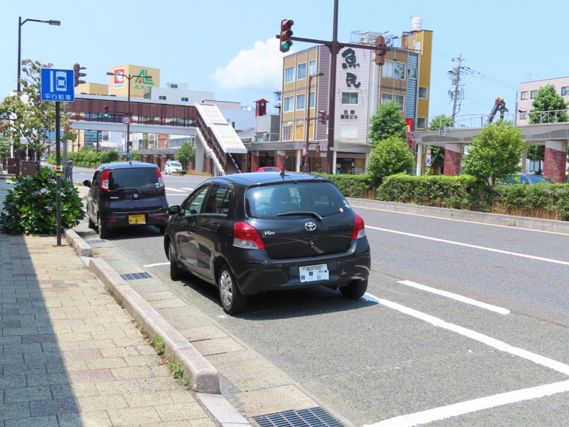 敦賀駅前商店街では、上下線の計4区間で駐車方法の指定として「平行駐車」規制が実施されています。かつて、これらの区間は「時間制限駐車区間」規制が実施されていました。 こちらは東進1つ目の区間(画像1,2枚目)、東進2つ目の区間(画像3,4枚目)、西進2つ目の区間(画像5,6枚目)のものです。駐車禁止の規制は実施されていませんが、「平行駐車」規制は普通自動車のみが対象になっています。 警察庁の「交通規制基準」では、この規制は基本的に道路標示のみで行い、必要に応じて道路標識を設置するよう通達されています。 |
