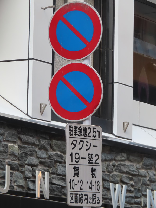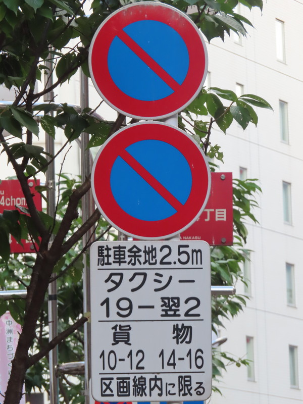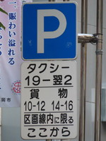 | こちらも繁華街の一方通行路です。意味は先述の1,2と同じですが、この区間では貨物が「駐車余地」及び「駐車可」の対象となっていません。