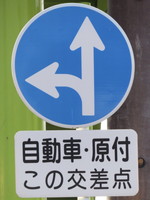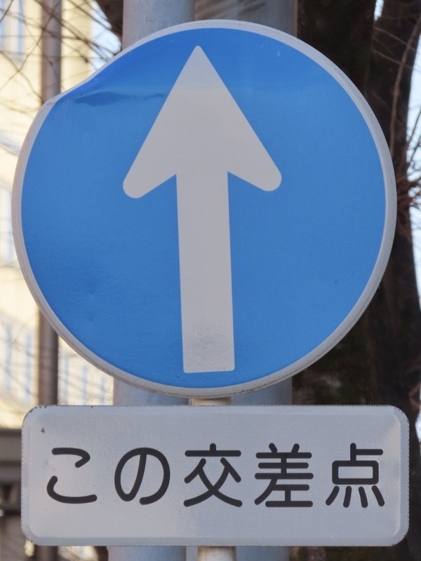 岐阜県では、「指定方向外進行禁止」の標識を設置する際、どこの交差点が対象であるのか分かりにくい場合、「この交差点」と表示された補助標識が併設されます。