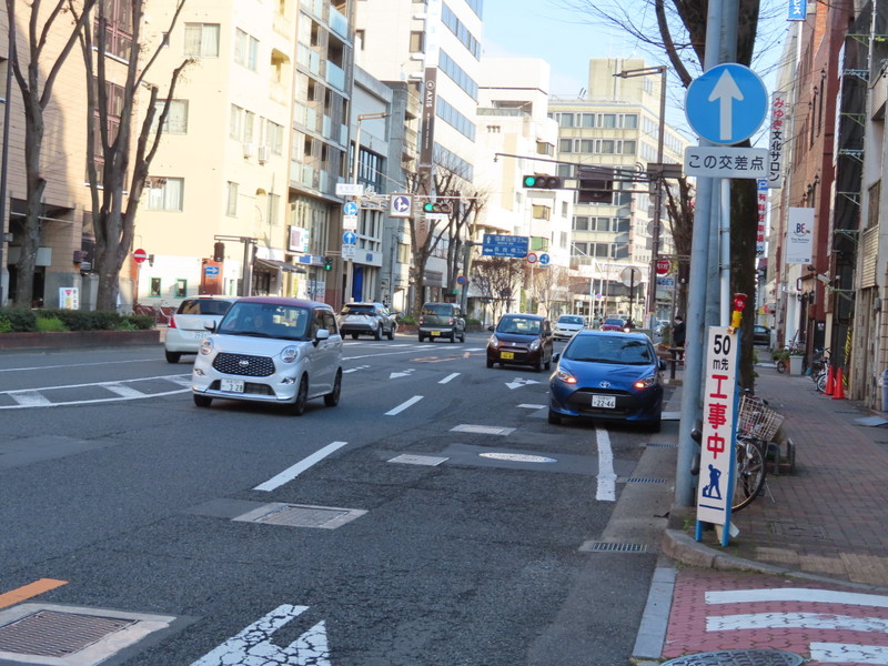 ここでは、規制されている交差点の右奥に設置されているので、分かりやすいよう補助標識「この交差点」を附置しています。 |