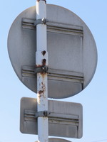 上から「区間内」の表示でマスキングされていますが、テープの劣化によりもともと表示されていた「高・中速車」の文字が浮かび上がってきています。