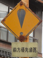 ちなみに優先道路側は片側1車線の広い道路で、交差点には信号機(押しボタン式)が設置されおり、優先・非優先の関係が明白ですが、この標識が設置された当初は優先道路側も道幅が狭く、優先関係が視覚的にわかりにくかったため、当該標識が設置されたのかもしれません。