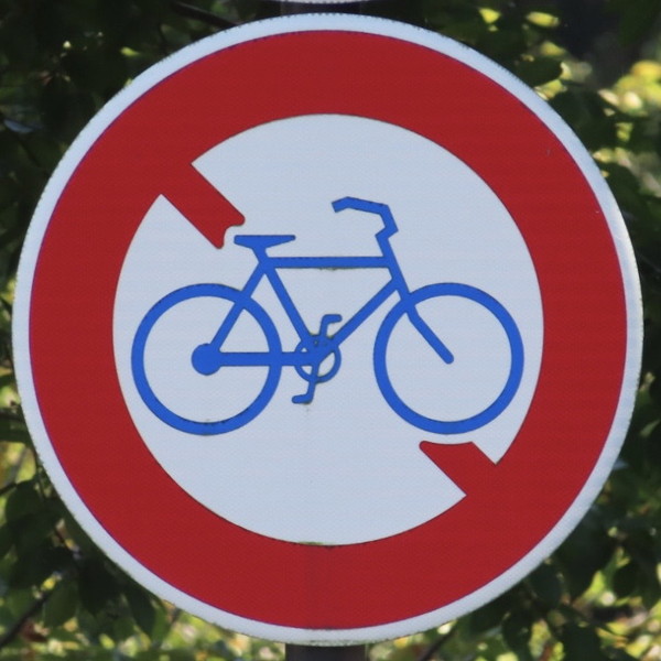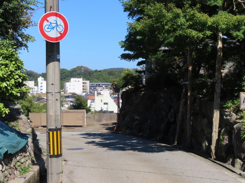 急な坂道を含む約200mの区間で「自転車通行止め」規制がされています。