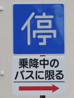 駐停車禁止となっている片側1車線の市街地の道路で、道路左側に停車帯が設けられており、その部分が「停車可」に指定されています。指示対象は乗降中のバスとなっていて、主に観光バスや通学通園バスのためのものでしょう。