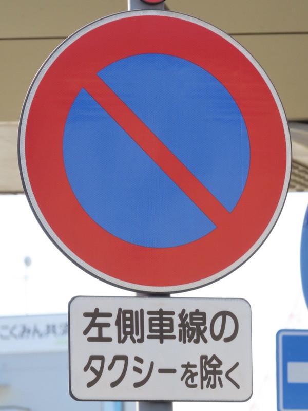 しかし、車両が道路で駐停車をする場合、道路の左側に沿わなければならない規則があるので、表示は単に「タクシーを除く」で良いと思います。