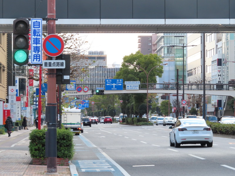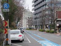 こちらは、片側3車線の交通量の多い大通りです。周辺は繁華街となっており、駐車監視員活動最重点路線に指定されています。
