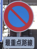 岡山市内では、駐車監視員活動重点地域内に設置する「駐車禁止」標識には、「重点地域」と表示された補助標識を併設するようです。