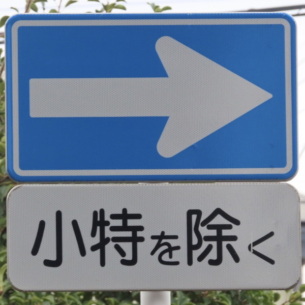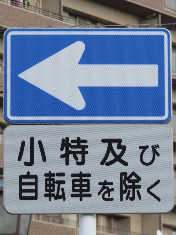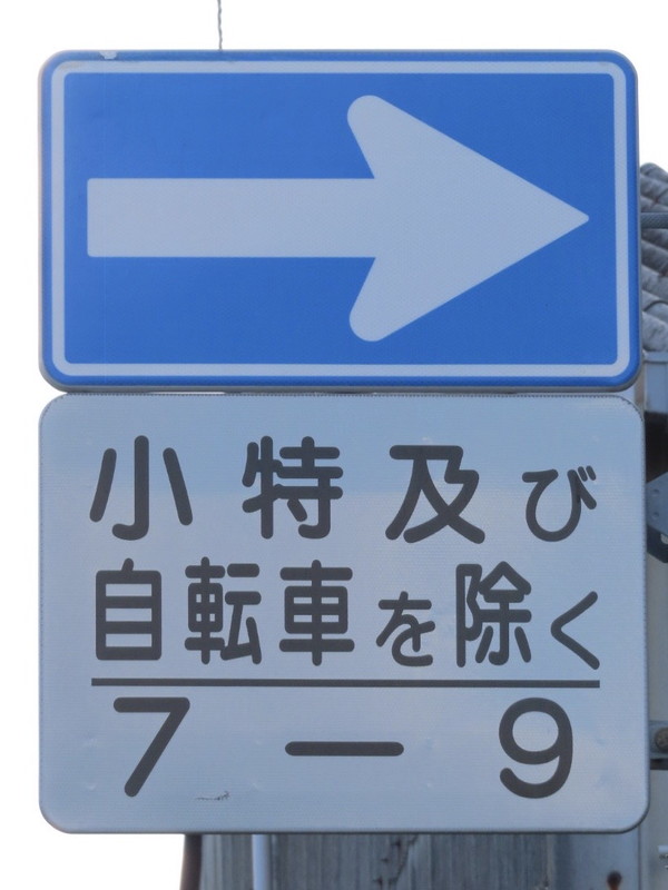 | 付近は工場が多く集まる地帯であるためか、こちらの「一方通行」規制は、小特が規制の対象から除外されています。 |