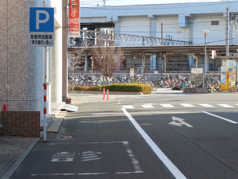 | 小児科前の指定区間です。一般車両の駐車場(私有地)は病院裏手にあります。駐車枠は2台分あり、枠内には「診」の表示があります。 |