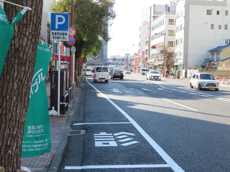 | 大通りに面するクリニック前の指定場所です。駐車枠は1台分あり、枠内には「診」の表示があります。 |