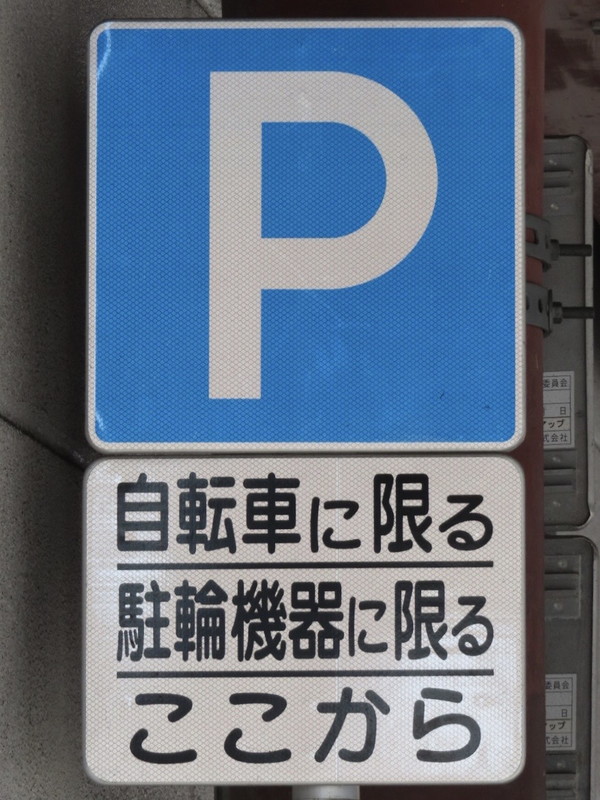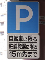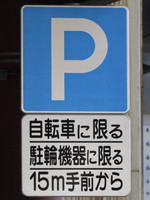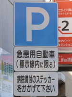 | 前述の「1」から50mほど手前の指定場所です。「病院備付のステッカーをかかげてください」とあります。駐車枠は1台分あり、枠内には「診」の表示があります。 |