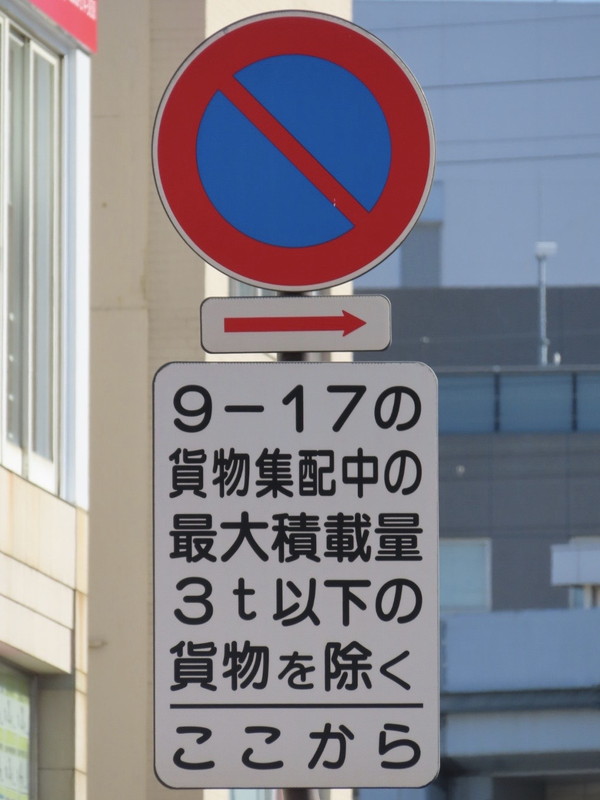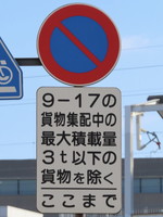 貨物集配中の貨物車を対象に駐車禁止規制が緩和されていますが、最大積載量について指定があります。 指定されている最大積載量の範囲は「3t未満」ではなく、「3t以下」となっています。 |
