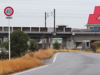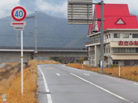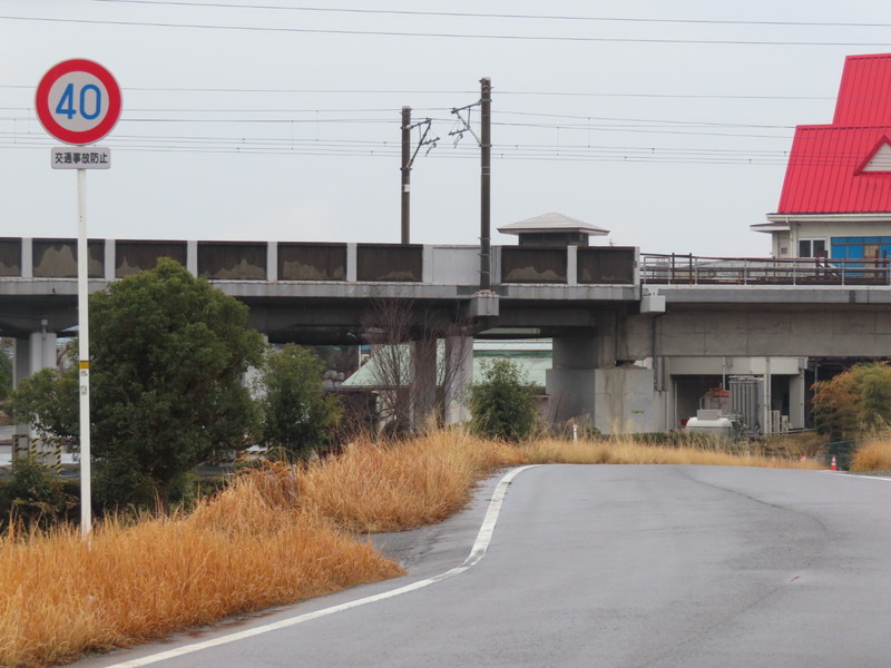 鉄道高架下で見通しの悪いカーブ(つづら折り)の手前の「最高速度」標識にのみ規制理由「交通事故防止」の補助標識が附置されていますが、区間内の他の「最高速度」標識には一切附置されていません。