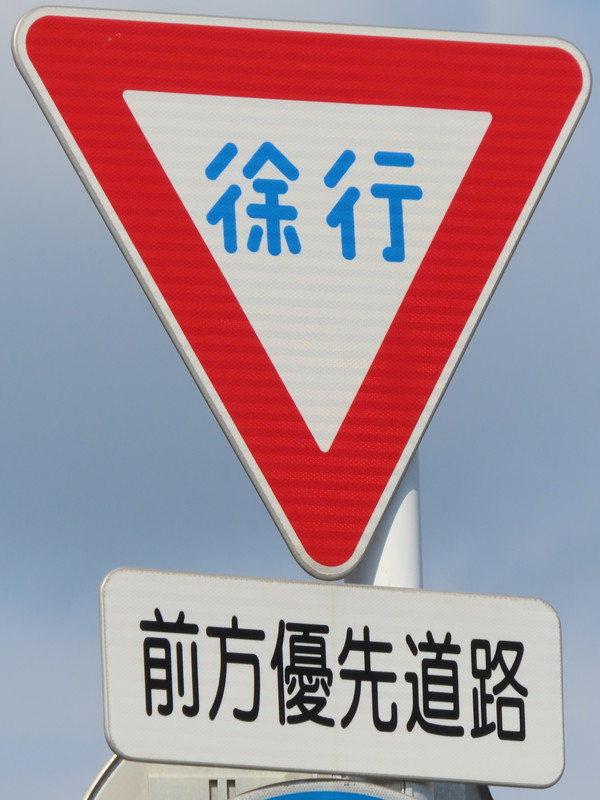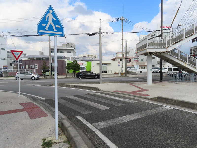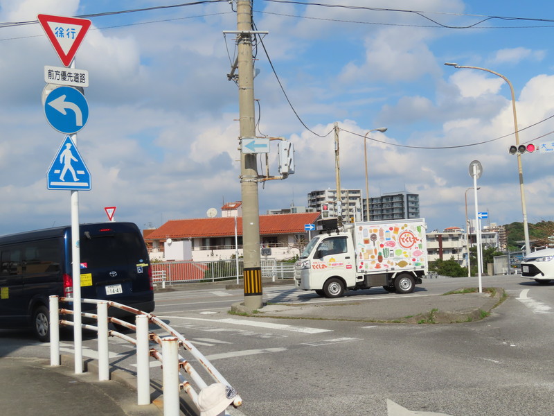 なお、「交通規制基準」では、この標識は優先道路側の「優先道路」標識と一体で設置することとなっていますが、沖縄県内ではこの例は皆無です。