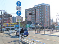 | 終点の位置に標識を設置できないため、代わりに8m手前に終点標識を設置し、補助標識は「この先8mまで」としています。