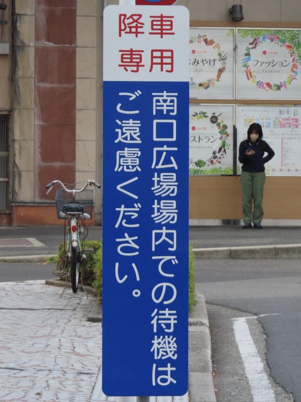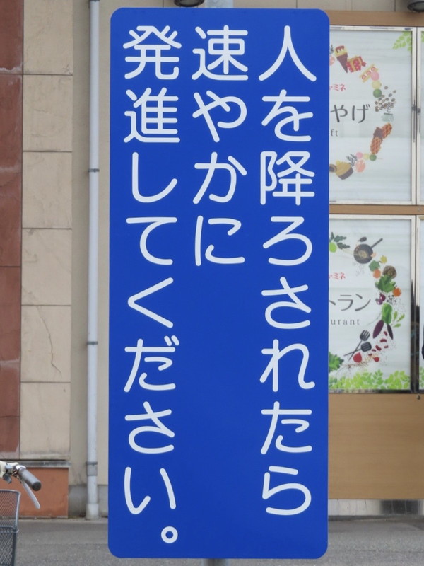 また、付近の看板では降車専用と表示されていますが、こちらは法的拘束力を持たないため、乗車や貨物の積卸しのための停車をしても駐停車違反とはなりません。