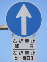 右折を規制する時間帯と、左折を規制する時間帯がそれぞれ異なるため、補助標識はこのような表示になっています。