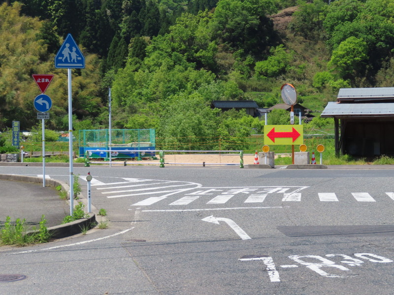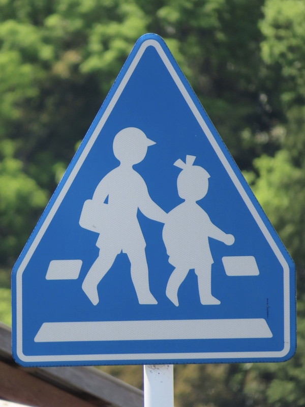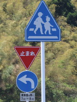 一時停止用の停止線が横断歩道のそれと一致していないため、「一時停止」と「横断歩道」標識を同一の標識柱に併設させず、それぞれ別々の標識柱に独立して設置されています。