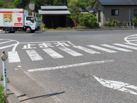 鳥取県では、「一時停止」の停止線が横断歩道を超えて交差点ギリギリにまで出される傾向にあり、同様の例をよく見かけます。