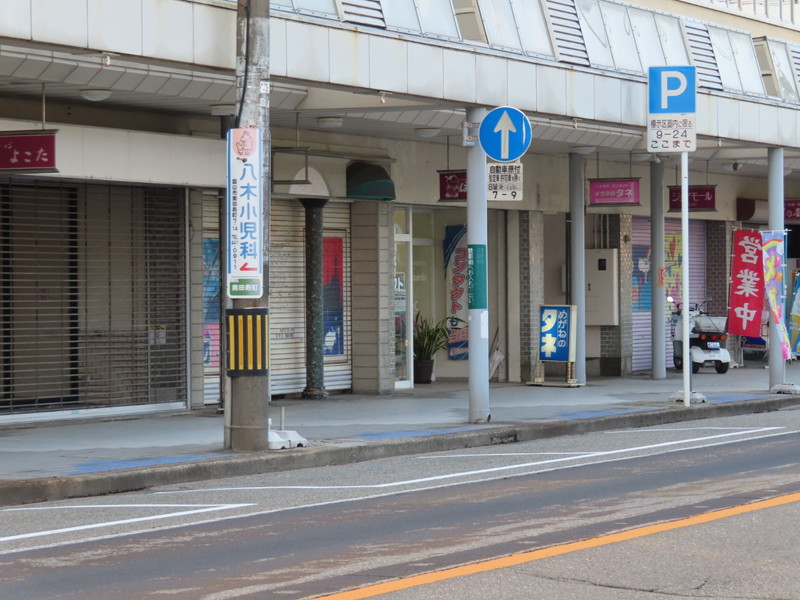 富山市中心部にある商店街で、9時から24時までの間、全車両が駐車可となっています。