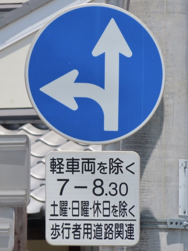 和歌山県では、「指定方向外進入禁止」標識に「○○関連」と書かれた補助標識が併設されることがあります。