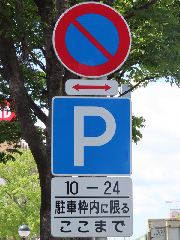 同指示は対向側にもされています。道路の幅員は大きく、且つ交通量もそれほど多くないので、両側に駐車しても円滑な交通の妨げにはならないでしょう。