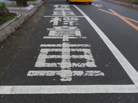 | 下関市中心部の商店街を通る片側1車線の道路左側において、歩道に切り込みを入れたベイ形式の区画が複数箇所整備されており、その部分が全車両「駐車可」になっています(指示時間は6時~24時)。ベイ内には、駐車枠が2つずつ設置されています。 |