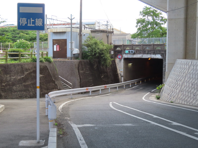トンネル内の交互通行用の信号機に関する停止線です。信号機が設置されているトンネルの入口の手前にはカーブがあり見通しが悪いほか、そもそも交差点ではないので信号機の存在自体に気付かない恐れがあるため、「停止線」標識を設置して停止位置を強調しています。